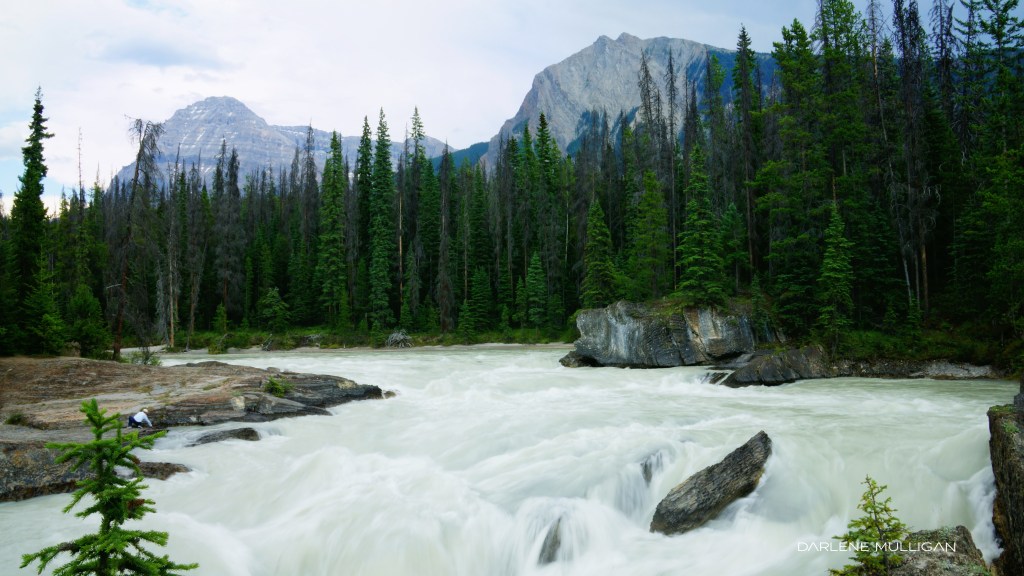Just a short drive from Emerald Lake, is the Natural Bridge, a rock formation carved by the erosive forces of the Kicking Horse River. The fast moving water is a captivating spectacle, where nature’s artistic flair is displayed in full form. To get a sense of scale of the rushing water, I captured a women dipping her hands in the river on the lower left.