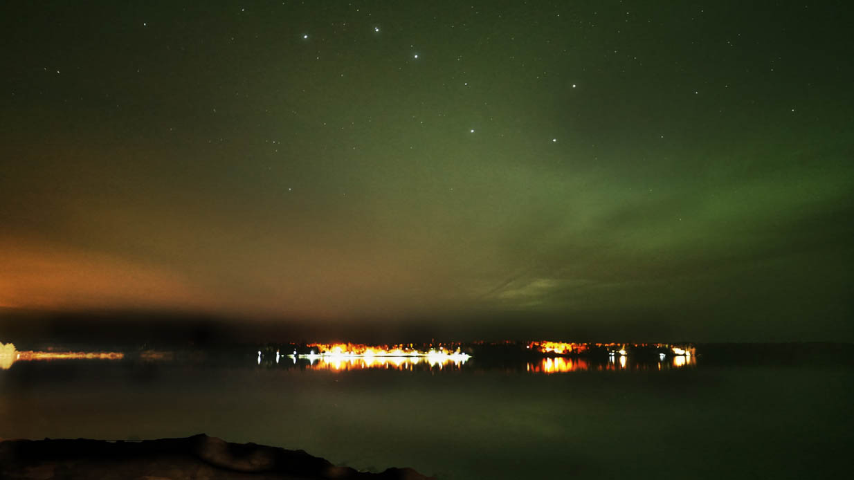 I spun my camera around to use the lights on the beach across the lake for a focus. Wow. Right behind me the Aurora Borealis or Northern Lights dancing over the town site. I was tempted to change my plans but I set my focus using the town lights for the Milky Way shots. Once I was satisfied, sticking to my mantra—never miss an opportunity—I captured these photos of the Milky Way.