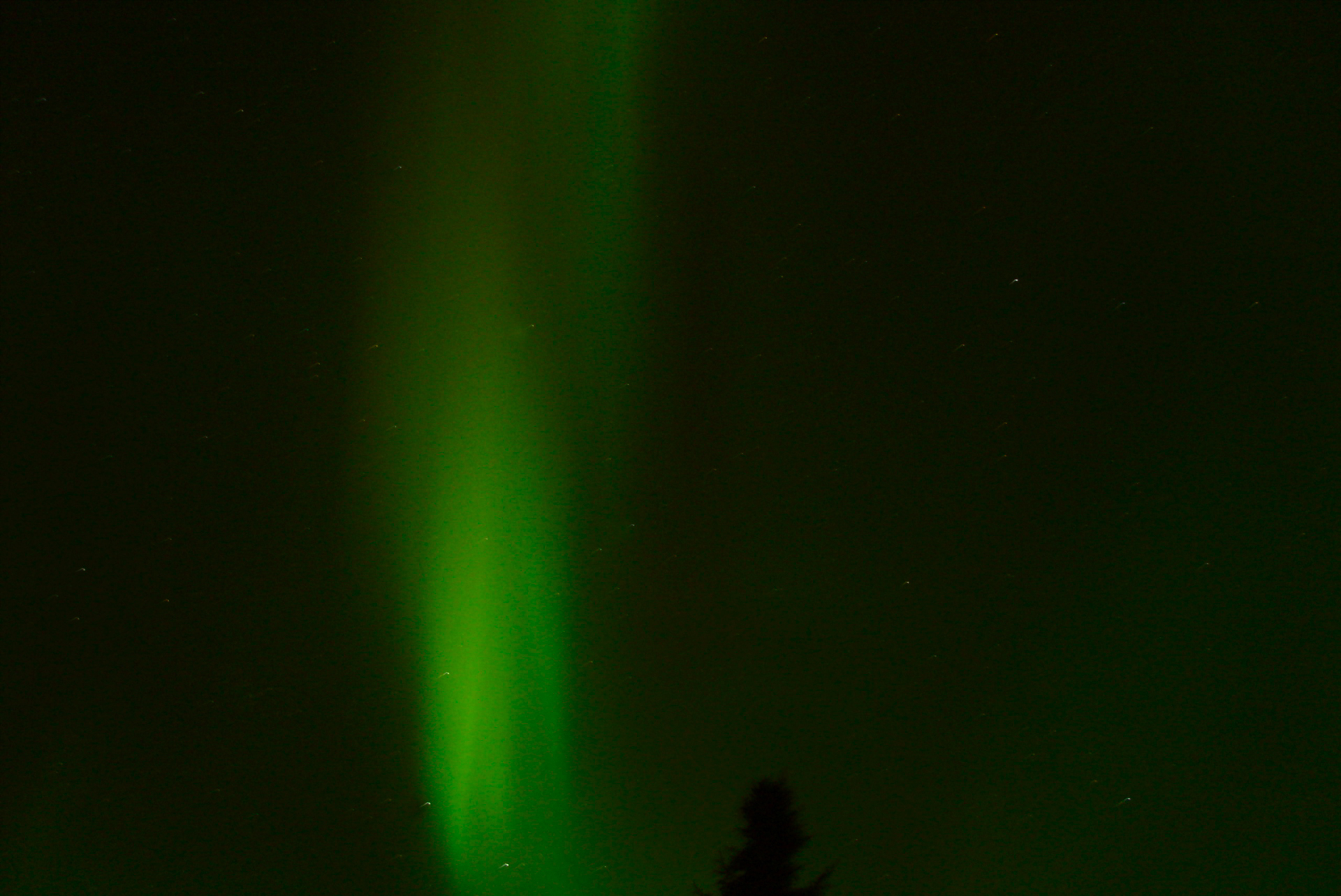 Because my camera shows the results of my changes in the view finder, I always review, then fine tune my settings from there. I learned that, in the case of the Northern Lights, not all settings are cast in stone. You have to keep experimenting with different settings. The shot below was captured with a Sony Cybershot with a ISO100, auto shutter, f2. I love the smoothness of the shot without any photoshopping; just a little brightness, contrast, dodging and burning.